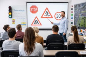 14 x 90 Minuten theoretischer Unterricht, davon 12 x 90 Minuten Grundstoff und 2 x 90 Minuten Klassenspezifischer Unterricht.